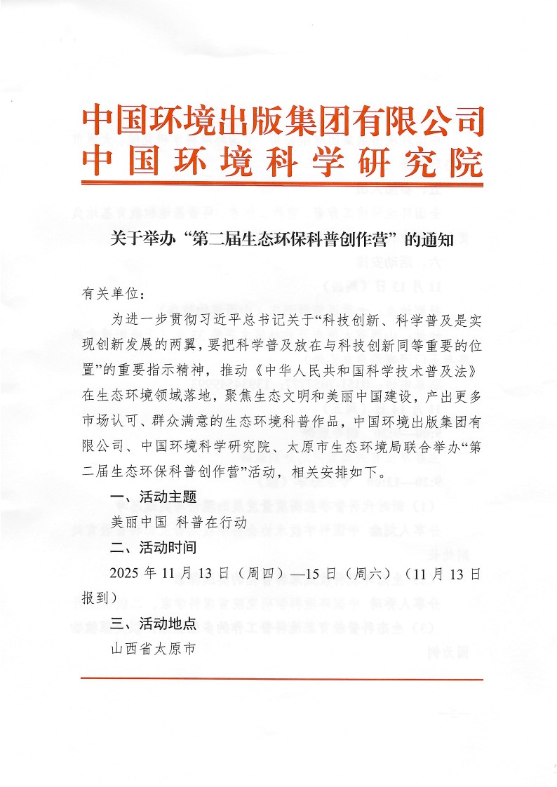 創作營期間,主辦方中國環境出版集團將發布“科普作品招募計劃”,與創作者攜手產出更多市場認可、群眾滿意的生態環境科普作品。